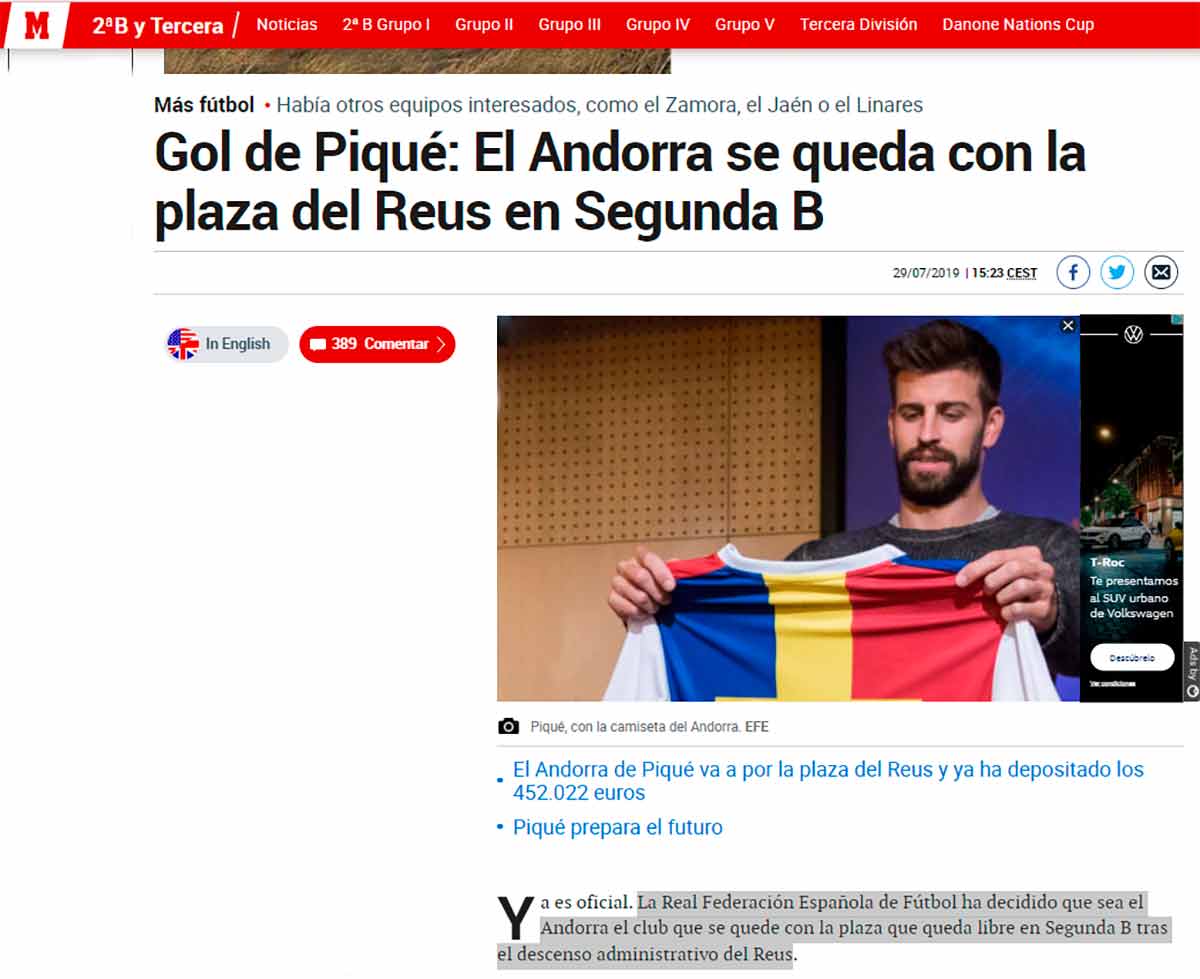 Lo último es fuerte: ahora resulta que la Federación se entiende con un jugador del Barça que además es el dueño del Andorra. No del Mollerussa, el Andorra. Club al que dieron ricamente la plaza del desaparecido Reus. Había otros interesados, pero Rubi decidió que era para Geri. Por cierto: al Reus lo liquidaron Laporta y sus muchachos. No estaban en el Barça y eso, mataron el rato lo que se dice de forma literal: asesinando a ese histórico club catalán.
