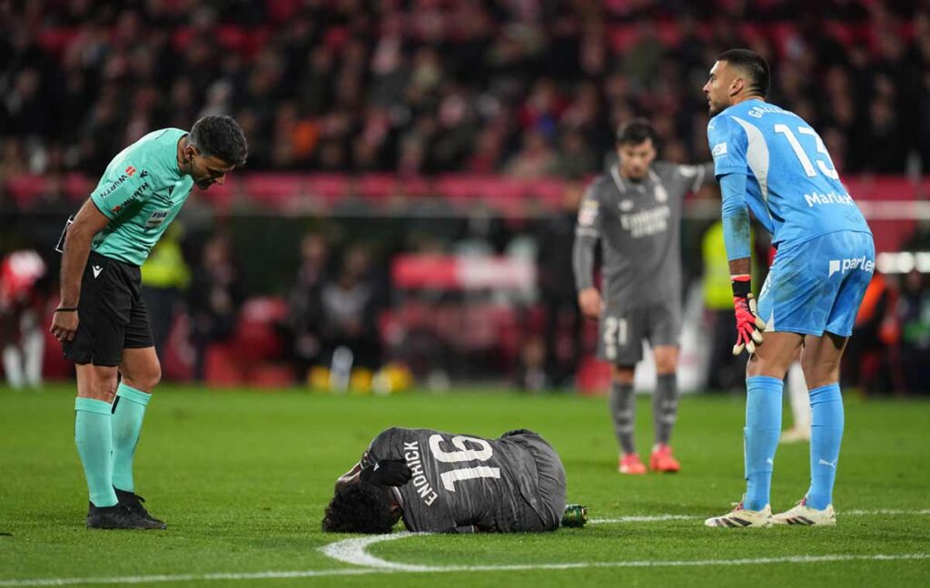 La primera parte apenas tuvo incidencias reseñables. Sin embargo, la terminó de la peor manera. Falta a Mbappé no señalada y amarilla por protestas a Ancelotti y al francés. La forma de sacarla, de mantener la cartulina segundos y segundos en el cielo y la cara de prepotencia saca a uno de sus casillas.