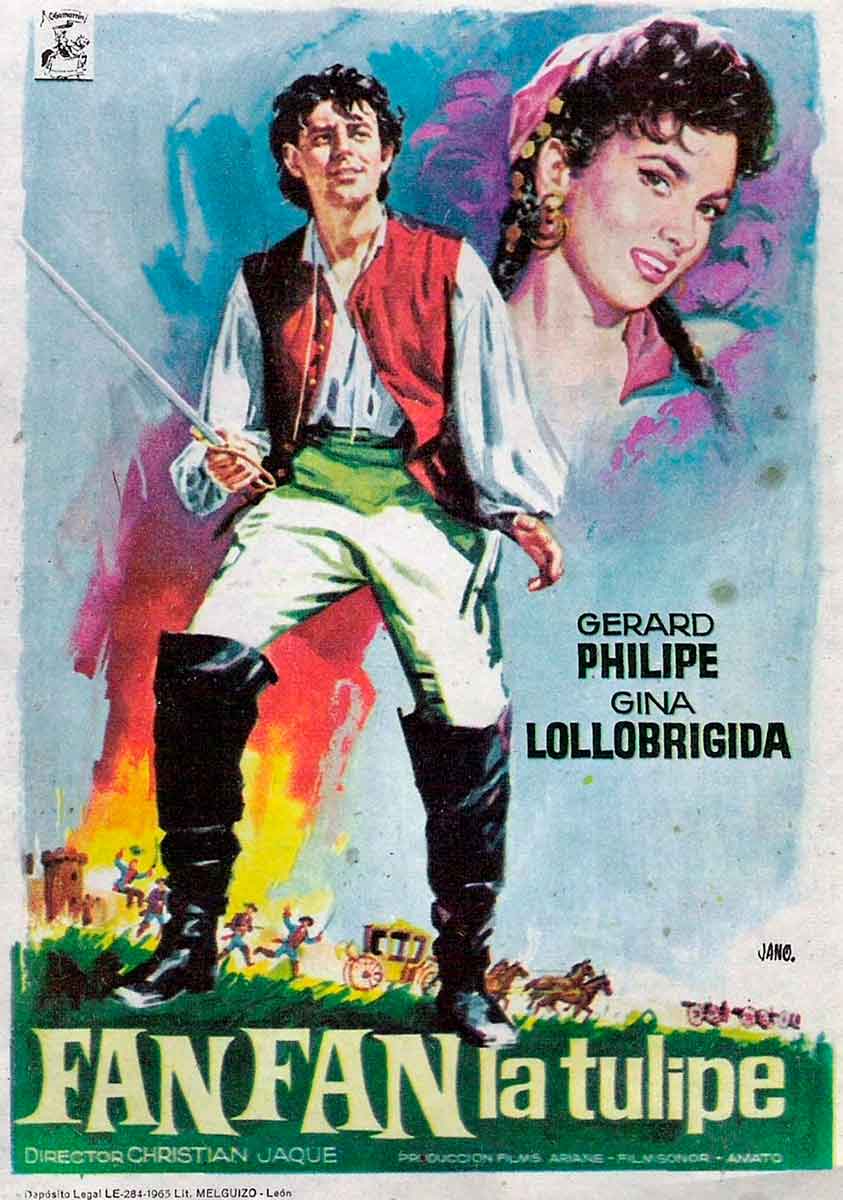 Quien les escribe se enamoró perdidamente de Gina al verla en el cine, en uno de aquellos programas dobles de cines de barrio (quizás fuese en el cine Carlton de la calle Ayala, ya desaparecido), protagonizando junto con otro de los más guapos de la historia, el francés Gérard Philipe (portada por cierto de la última novela de Javier Marías, Tomás Nevinson), una película de aventuras llamada Fanfan la Tulipe, de 1952.