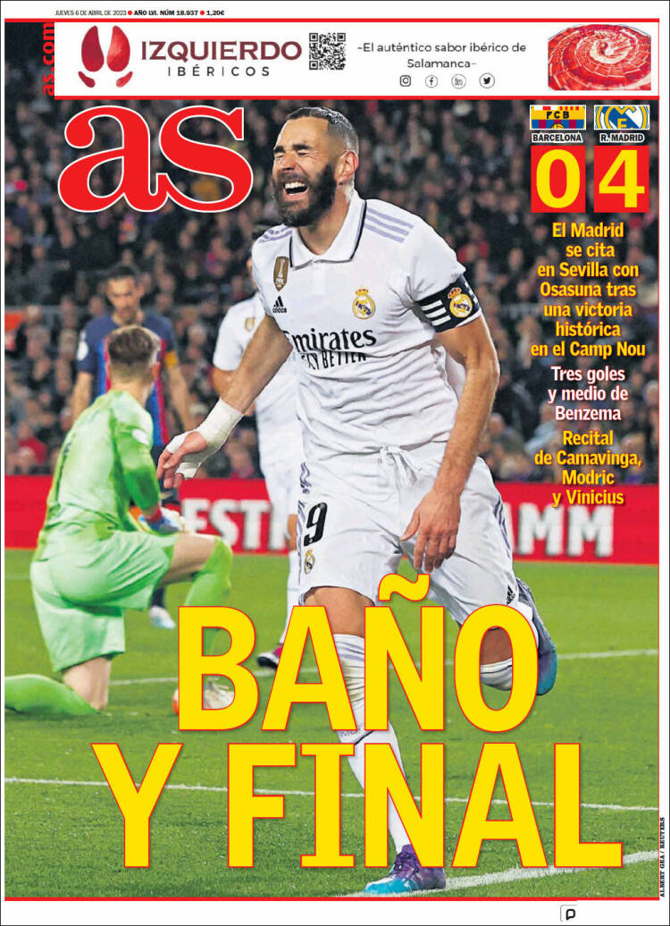 Buenos días, amigos. Cuantísimo gozo. El Real Madrid no le metía cuatro goles al Barcelona en el Camp Nou desde 1963, cuando Puskas cumplió el papel que anoche desempeñó Benzema con otro hat trick, y lo acontecido anoche en la sede suprema del negreirismo superó con creces los sueños más húmedos del madridista más recalcitrante.