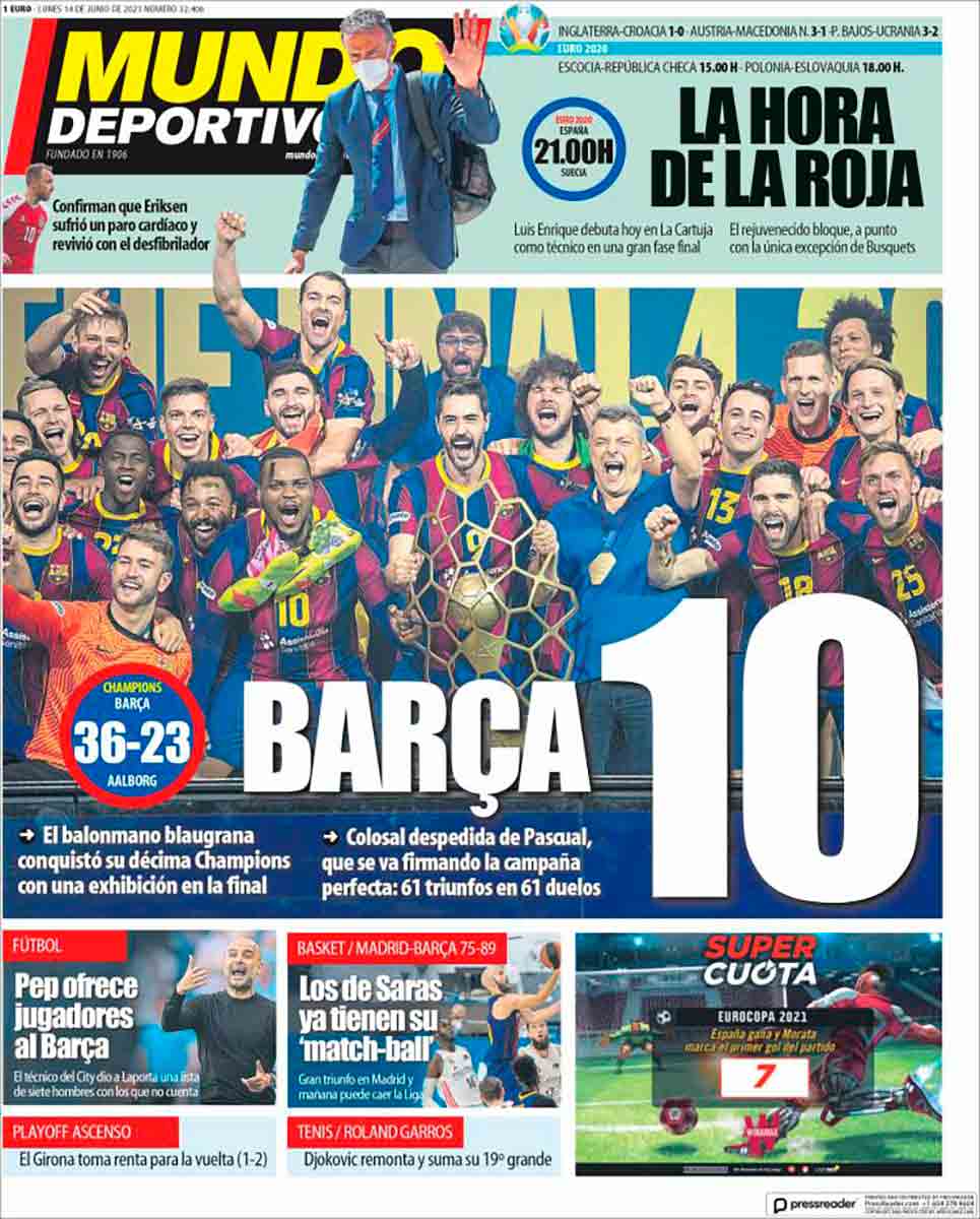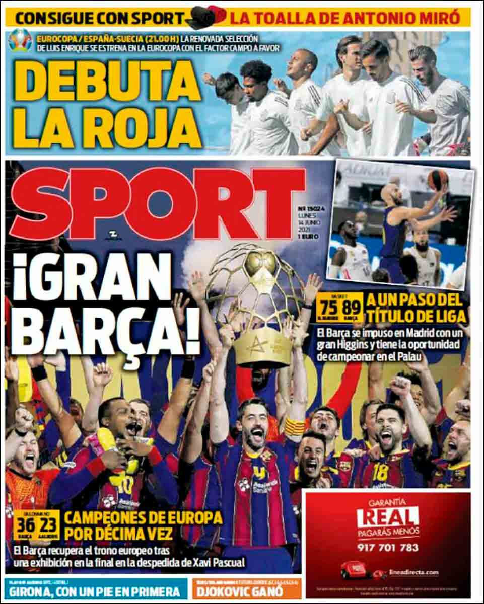 Os dejamos con Sport y Mundo Deportivo, que coinciden en otorgar los grandes honores de portada al logro por parte del FC Barcelona de la Champions de balonmano. Es una noticia que nos viene muy bien para saber que la Champions de balonmano existe. Esta vez sí que confesamos severos problemas para reconocer a algunos jugadores de las fotos. Es una sección, la del balonmano, en la que el Real Madrid ha fracasado este año estrepitosamente, en doloroso contraste con el éxito culé. Florentino dimisión.