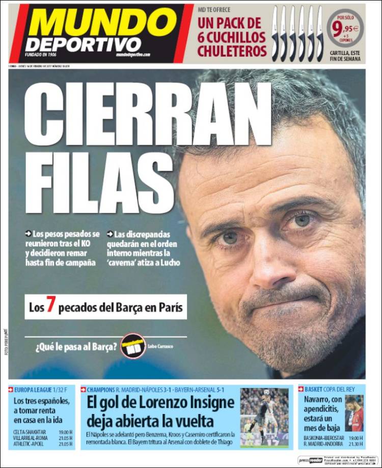 Esto pinta bien, pero no me fio, no me fio de que el Farsa quede eliminado y me fio menos de nosotros, ayer pudimos quedar la eliminatorio sentenciada, la famosa pegada nos está siendo esquiva, habrá que regar la flor de vez en cuando, espero el gol de Di María en el Campo Nuevo, si puede ser mejor el 0-1, en cuanto a nosotros, pues esperemos que salgan a San Paolo, con la misma actitud que ayer, porque sino lo vamos a pasar mal.