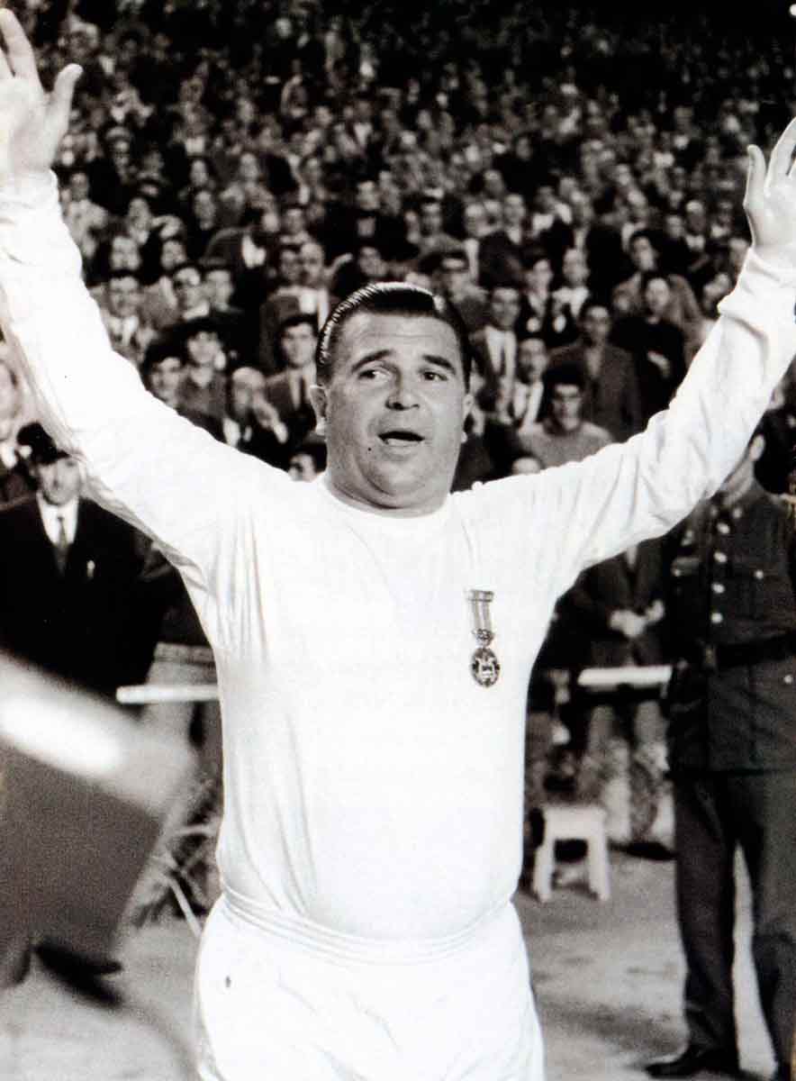 Pancho Puskas llegó al Real Madrid en el verano de 1958, con 31 años y 20 kilos de más. Marcó 242 goles en 262 partidos, una estadística que nos lleva a fantasear con lo extraordinariamente bueno que tuvo que ser antes de llegar a España, cuando era más joven, y a lamentarnos por la falta de imágenes de la época. No es de extrañar que cuando Di Stéfano vio lo que era capaz de hacer dijera que el húngaro controlaba mejor la bola con la zurda que él con la mano. Probablemente, no ha habido un arma futbolística más precisa que la pierna izquierda de Cañoncito Pum.