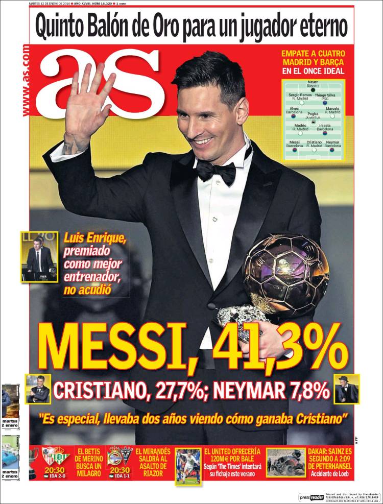 Buenos días. Messi gana su Quinto Balón de Oro a las pocas horas de que su club lance al mundo un tuit destinado a permanecer en la Historia de la Infamia en el Deporte por los siglos de los siglos poco más o menos. La coincidencia de ambos eventos brinda oficialidad al atrevido título que hoy hemos escogido para esta sección. Cada balón de oro de Messi, cada gol de Messi puede ser leído única y exclusivamente -si se quiere- en clave de contribución en pos del triunfo de una causa política. Lo que acabamos de escribir es algo que muchos venimos diciendo desde hace lustros, con frecuencia ante la incomprensión de quienes nos instaban a "separar temas". No hay separación ya, ni siquiera cosmética, y el pronunciamiento oficial de la cuenta del Barça así lo prueba. El FC Barcelona, con su gran estrella al frente, quiéralo esta o no (y si no lo quisiera se habría desmarcado), es el instrumento futbolístico-mediático-propagandístico de la independencia de Cataluña.