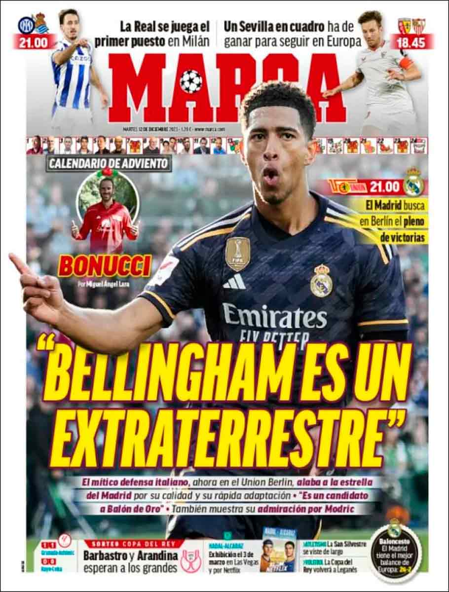 Marca dedica su portada Bellingham, de quien Bonucci dice que es un extraterrestre. Curiosamente, Jude marca más goles de los esperados, según las estadísticas avanzadas panenkitas.