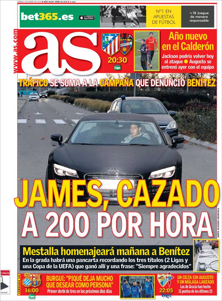 Pero ya saben que para lecherismo pertinaz el de Relaño y su Ouija Today, hoy más Ouija Today que nunca. Si el ejercicio de Marca puede parecer excesivo en su tratamiento digno de un atestado, o mejor, de un sensacionalista programa de policías en acción de la más audaz (y aburrida) televisión norteamericana, la mirada de Relaño a la noticia de James no necesita de alardes gráficos para evidenciar la mayor de sus virtudes: el retorcimiento de la realidad hasta que, et voilà, todo el Madrid quede implicado en el asunto y casi veamos a Benítez de copiloto, tal vez liándose un porro, y ya puestos, también veamos a Florentino en el asiento de atrás haciendo botellón e incitando a James a pisar más fuerte el acelerador.