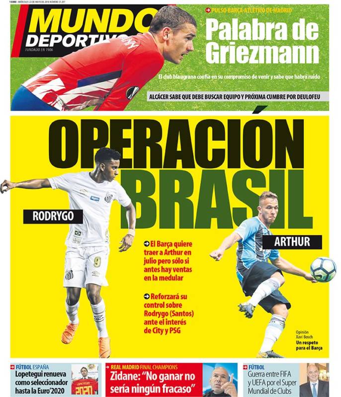 También tiene su gracia esa portada del mundo deportivo que poneis aquí, entre las otras que dice; "operación Brasil. el barsa reforzará su control sobre Rodrygo ante el interés de city y psg." Se han lucido. Otra vez.