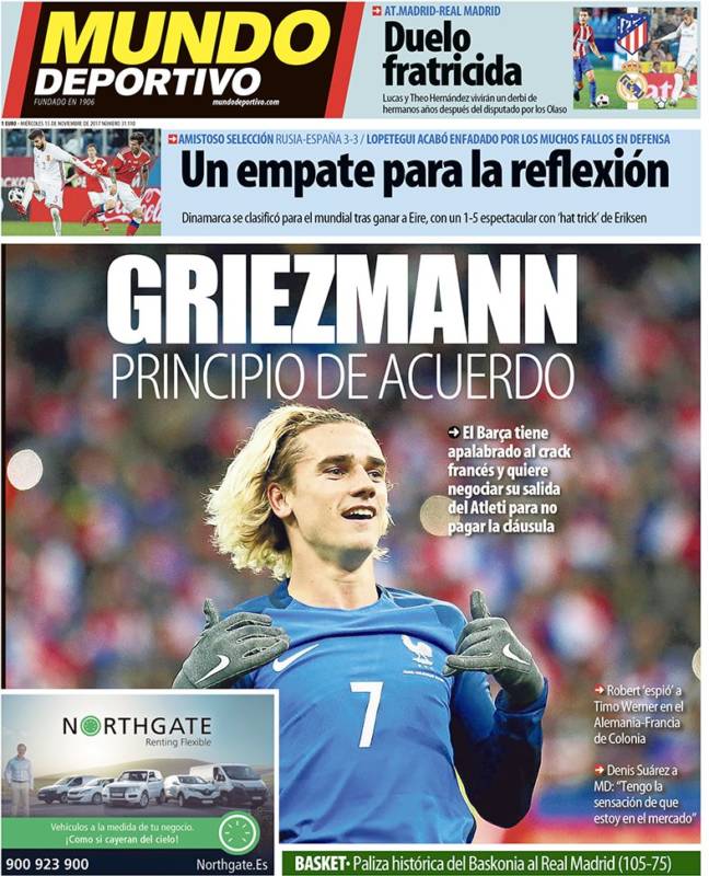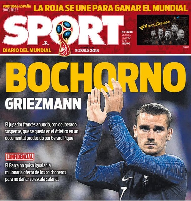 Lo cierto es que Griezmann no jugará en el Barcelona pese a todo lo que se ha dicho y que Piqué ha dejado vendido al club que le paga. Todo lo demás, papel mojado. Que den gracias a que ya está aquí el Mundial...