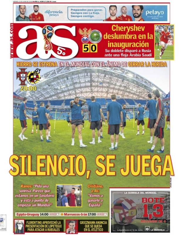 Aún así, hoy se habla de "declaración de guerra a la RFEF", y en su siempre inconcebible editorial Relaño llama al acto de ayer en el Bernabéu "un gratuito e insidioso acto de desestabilización en vísperas del primer partido del Mundial". Lo que fue es un un gratuito e insidioso acto de madridismo, estimado Alfredo.