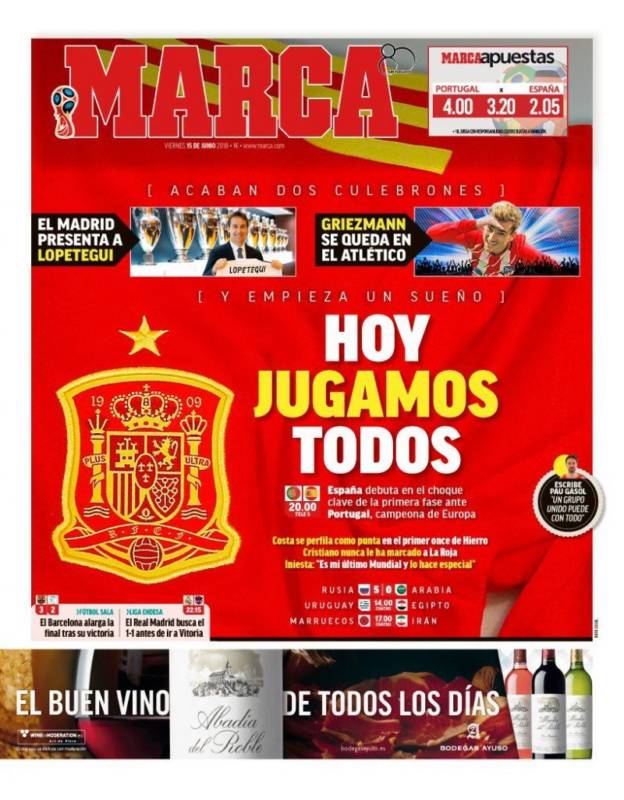 Por otra parte, si nos volvemos pronto, la culpa será del Madrid, y/o de Lopetegui. Dice por ejemplo Barnaby que tenemos falta de gol, y yo opino igual, pues bien, la culpa es de Lopetegui por no llevar a Morata (por ejemplo). Se defenderá que Hierro no pudo hacer más con los mimbres que le dejó Lopetegui y a otra cosa. Otro ejemplo, esto no hubiera sucedido si Lopetegui siguiera, pero como el MAdrid desestabilizó a la selección nos volvimos antes de tiempo a casa. Resultado, culpa del Madrid. Da igual, juegan con las cartas marcadas. No comprendo cómo se ha llegado a esta situación. Yo creo que hace 20 años el Marca era MAdridista, pero muy moderado, más o menos objetivo. Y el As, quizá era madridista tirando a forofo. Yo el As no lo compraba nunca, y el marca 10 o 15 al año bien me compraba así que del Marca hablo con mi perspectiva con 18 años, 16 o algo menos, y del as, simplemente por sensación mía de entonces.