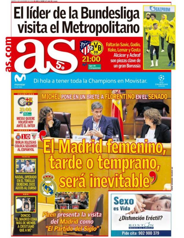"El Madrid femenino, tarde o temprano, será inevitable", comentó el entrenador, y es muy posible que tenga razón (ya hemos debatido sobre este particular en La Galerna). Sin embargo, y según el periódico de Relaño, esa inocente frase pone "en un brete" a Florentino Pérez. Un problema más para el presidente del Real Madrid. Porque sí y punto.