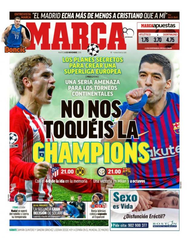 En esta defensa a ultranza de la Champions tal como hoy está establecida, con su petrodoping incorporado y todo, sorprende y decepciona encontrar hoy también a Marca, que se saca de la manga un titular no menos guerrero y reaccionario que el editorial de Relaño.