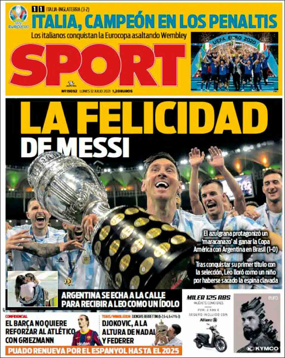 Bueno Messi por fin levantó un título con Argentina pero me temo que ya se quedará sin mundial viendo la exuberancia de las selecciones europeas y la castaña de copa de América que se ha disputado. Gloria eterna a Italia y su manera de competir, los centrales han dado una master class en la final.