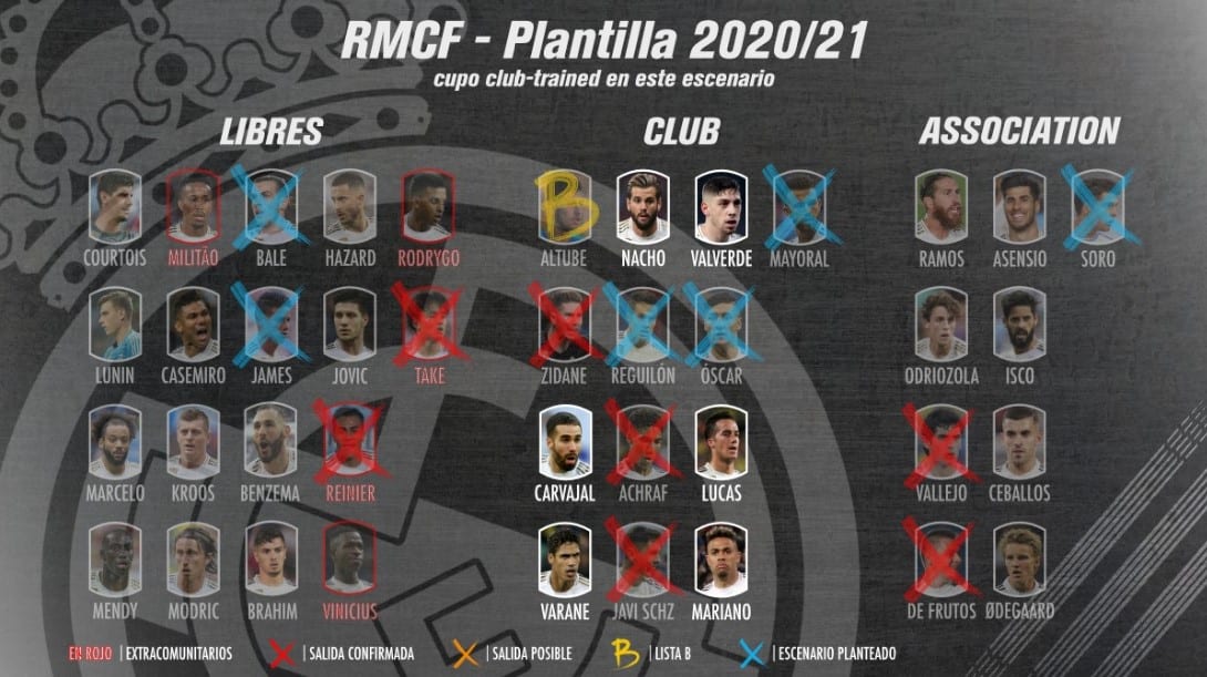 En caso de confirmarse la salida de ambos, quedarían 26 jugadores, todavía con muchas preguntas por responder. Si la hoja de ruta del club es similar a la de este artículo, habría margen suficiente en el cupo club-trained como para poder tomar diferentes caminos. Quedarían 6 jugadores (Carvajal, Varane, Nacho, Valverde, Lucas y Mariano).