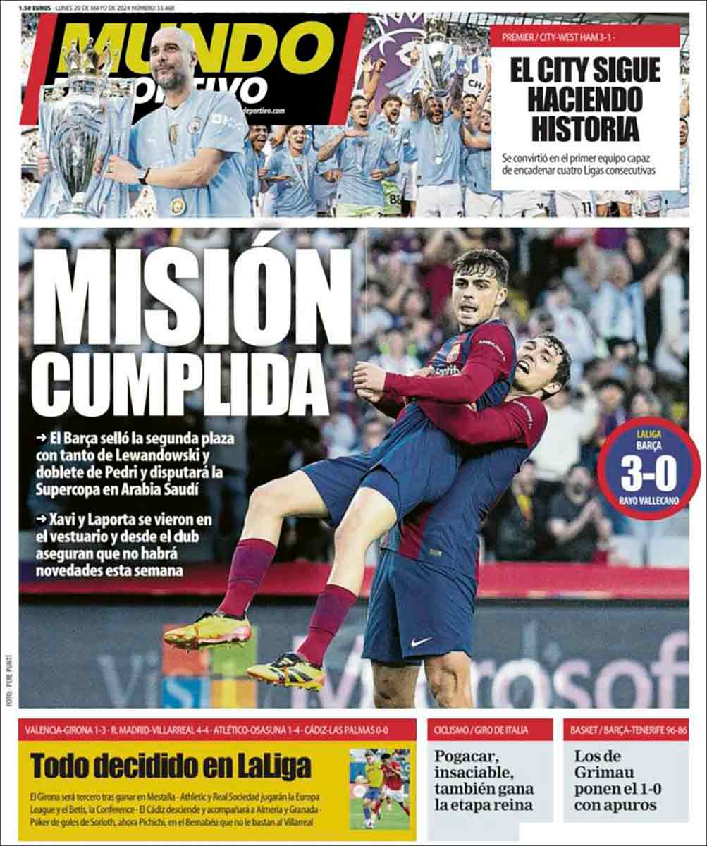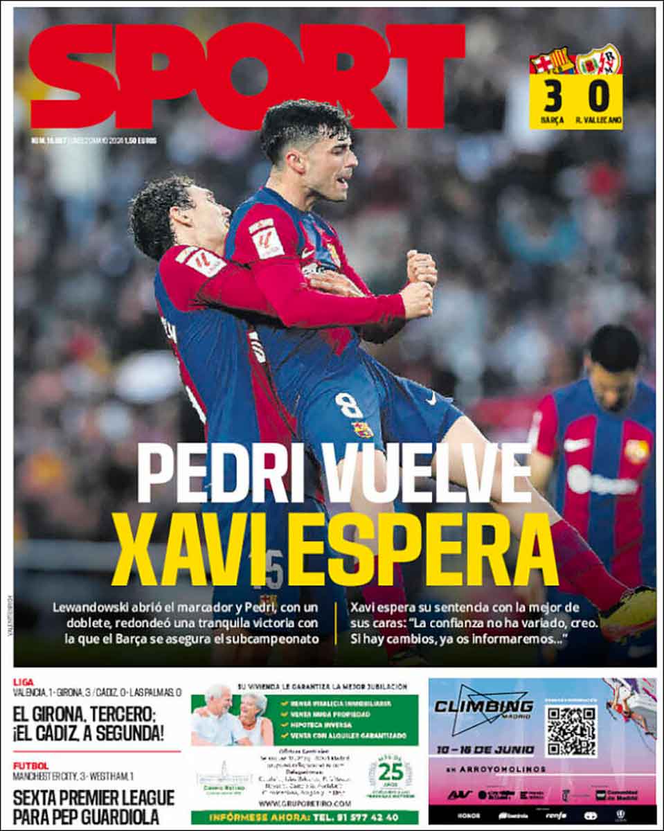 El que avisa no es traidor. El resto de primeras planas son un aburrimiento. La de Marca está dedicada a Sørloth, pues no en vano hablamos del diario de todas las aficiones, incluyendo las nórdicas, y las portadas cataculés relatan el penoso deambular de su equipo en pos de la segunda plaza, con Xavi en el alambre y Laporta ingresando en una cuenta personal de los miembros de su junta emolumentos que son para el club.