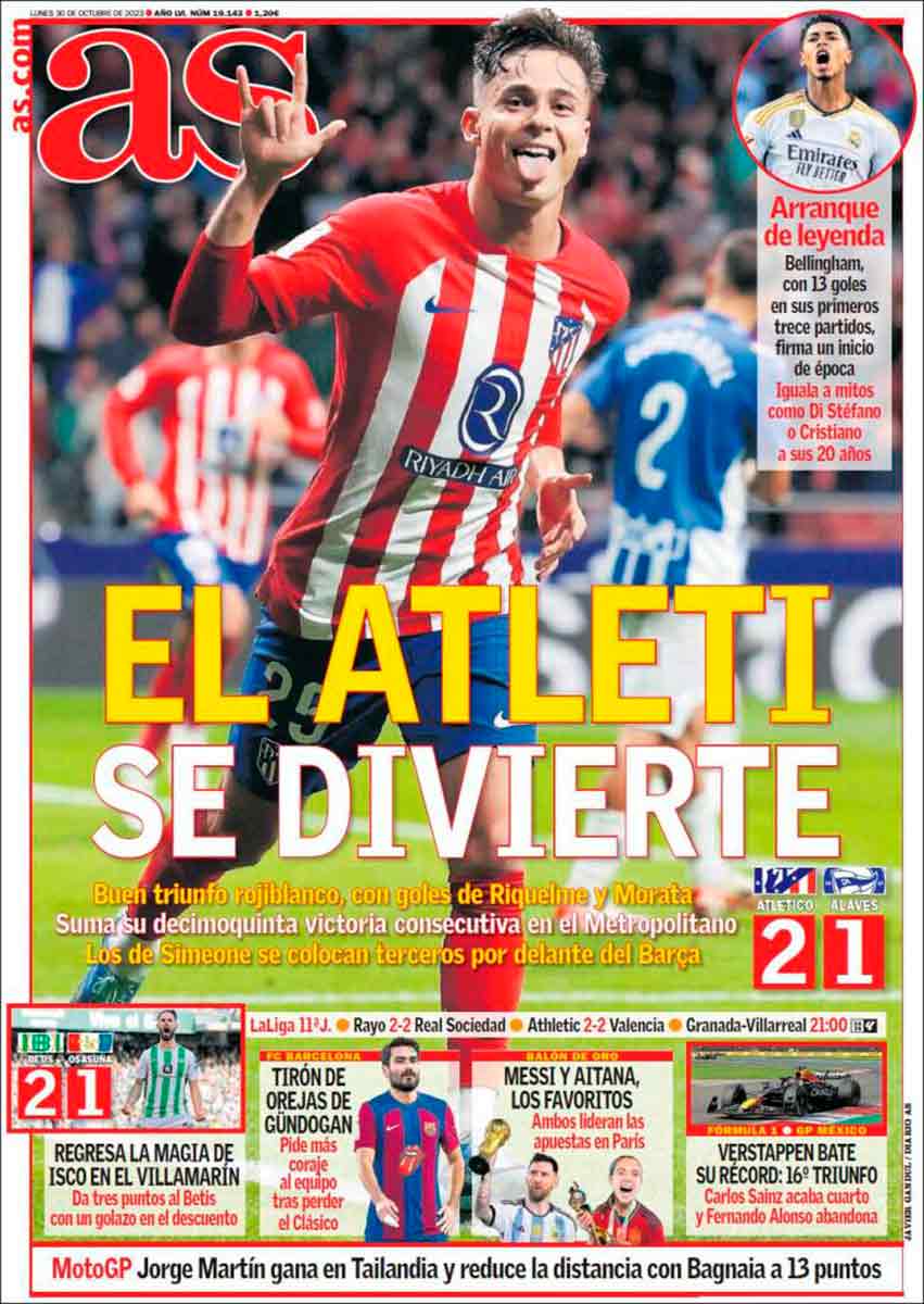 As dedica su portada al Atleti y es el único de los Cuatro Jimenes del Apocalipsis que no habla de la lesión de Tchouaméni, que llega en uno de sus mejores momentos. El parón de selecciones, por una vez, puede ser beneficioso en este aspecto.