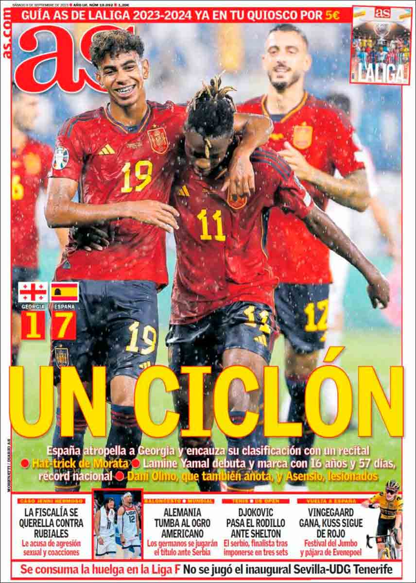 De la portada de As destacamos la noticia del faldón inferior: “La Fiscalía se querella contra Rubiales”. Por fin, pensamos. Pero enseguida nos sacan del engaño, averigüen a qué se debe: