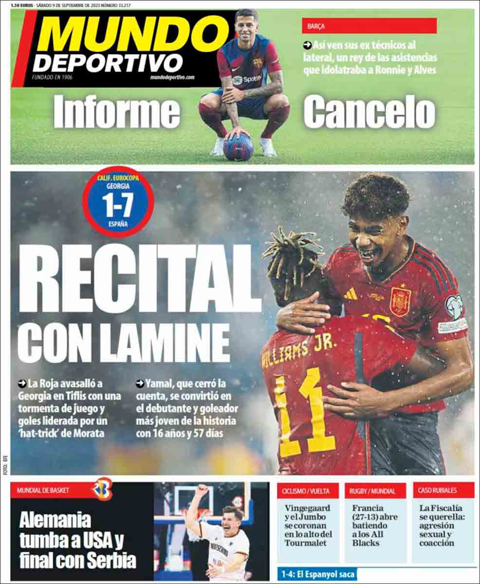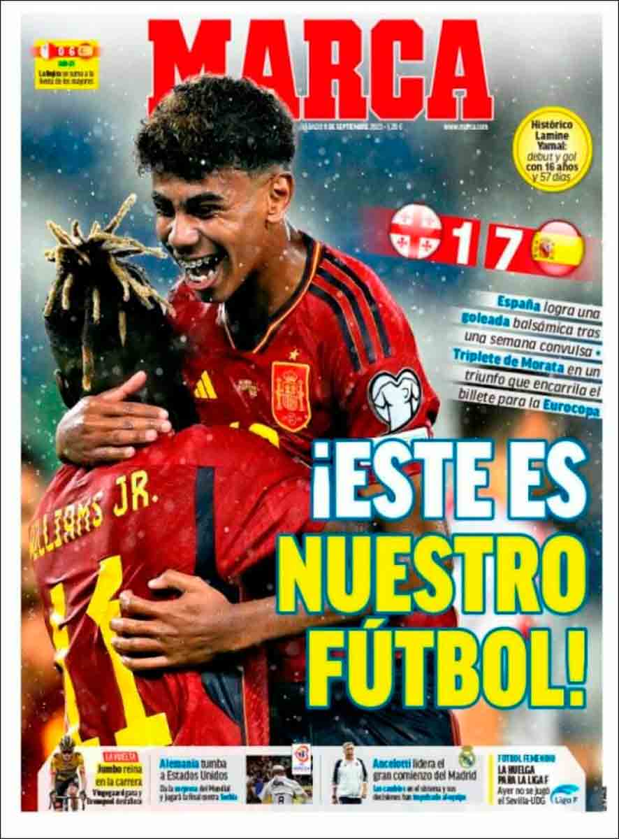 Los diarios cataculés se congratulan por la aparición de una nueva estrella, no sabemos si fugaz, como tantas otras, pero “ha nacido una estrella”: Yamine Lamal, quien a sus 16 años y 57 días, debutó con gol en la selección de Luis de la Fuente.