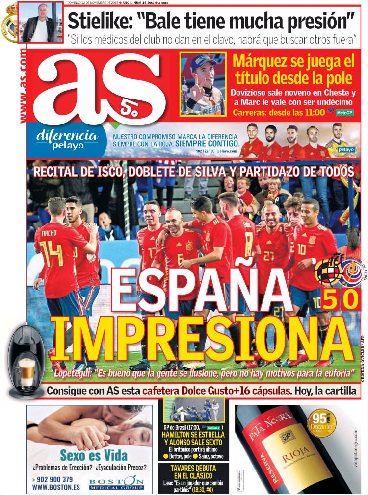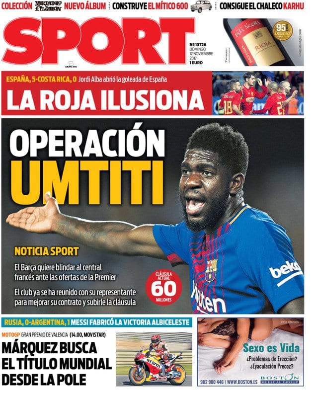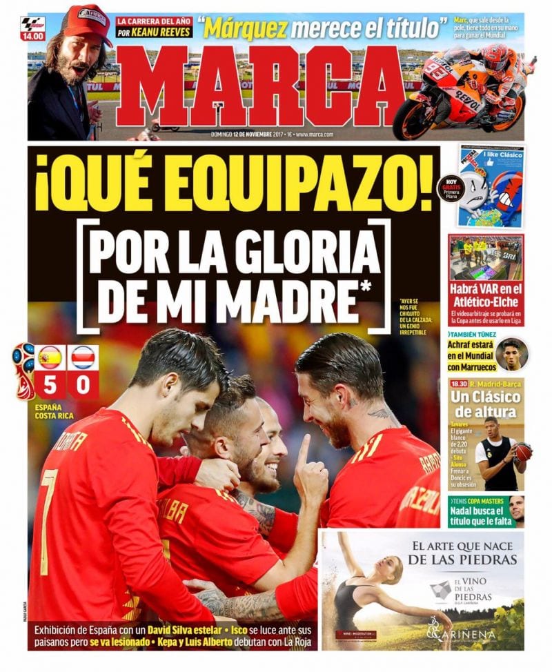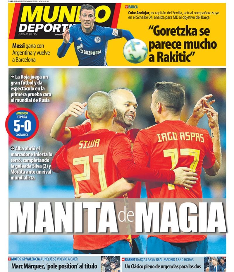 En Barcelona, mientras tanto, 'Mundo Deportivo' celebra el gran estado de forma de España y 'Sport' suspira porque Umtiti mejore su contrato y no haga una espantada en 2018. A todo esto, el que sigue sin renovar es Leo Messi. Ahí lo dejamos...