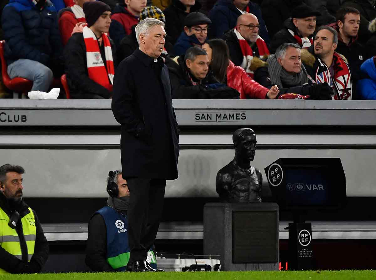 Sucedió tras el enésimo tarascazo por detrás a Vinicius de un jugador del Bilbao. El 20 del Madrid se revolvió como un toro de lidia cuando le ponen un par de banderillas, harto de la violencia y del chuleo. Se iba a encarar con el marrullero vasco, otra vez, pero Carletto, que estaba a su lado en la banda, “al liquindoi” como se dice en Cádiz, es decir, ojo avizor (traducción macarrónica del Look and do it con el que los marineros ingleses se pedían entre ellos estar al quite de que no les birlaran nada mientras el práctico les atracaba el barco en el siglo XVIII), lo llamó como un padre hasta que captó su atención. “Habla conmigo, habla conmigo”, le ordenó el italiano. Vini respiró un segundo, asintió con la cabeza y se fue de la jugada. Ancelotti ganó la partida.
