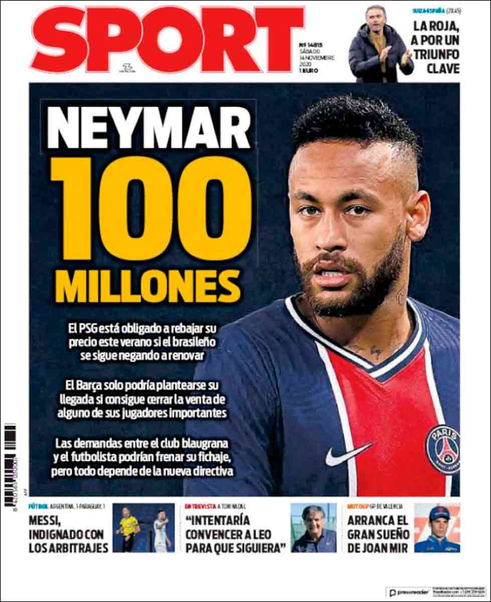 Yo entiendo que los del Soport y mundo vomitivo tienen que vender pero de ahí a tratar a sus clientes como gilpollas me parece excesivo. Estando cómo están sus cuentas ,con la obligación de rebajarse sueldos para paliar la deuda sacan en portada a Neymar hablando de que por "solo " 100 millones pueden ficharle y que el PSG está obligado a vender,como a Verratti que también estaban obligados a venderle hace unos años y de tanto insistir les acabaron birlando a Ney.