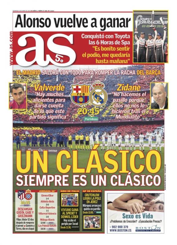 Me sumo a la felicitación de todas las madres, por supuesto a la mía también. Dicho esto y volviendo al clásico, para mí no tiene ni chicha ni limoná. Si lo ganamos, pues genial, y si no pues no pasa nada porque lo único que importa se dilucidará el 26 de mayo.