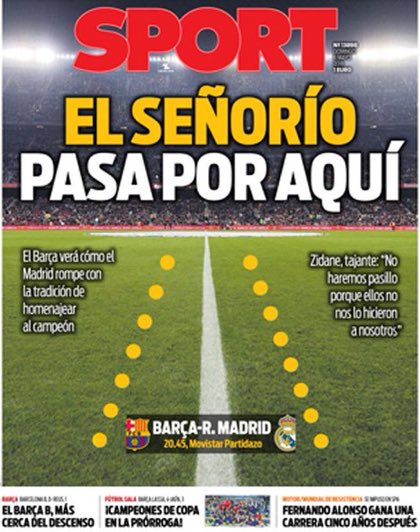 Y ahora, por desgracia, toca cambiar el tono y ver la portada de 'Sport' de hoy en la que intenta darnos lecciones de señorío.