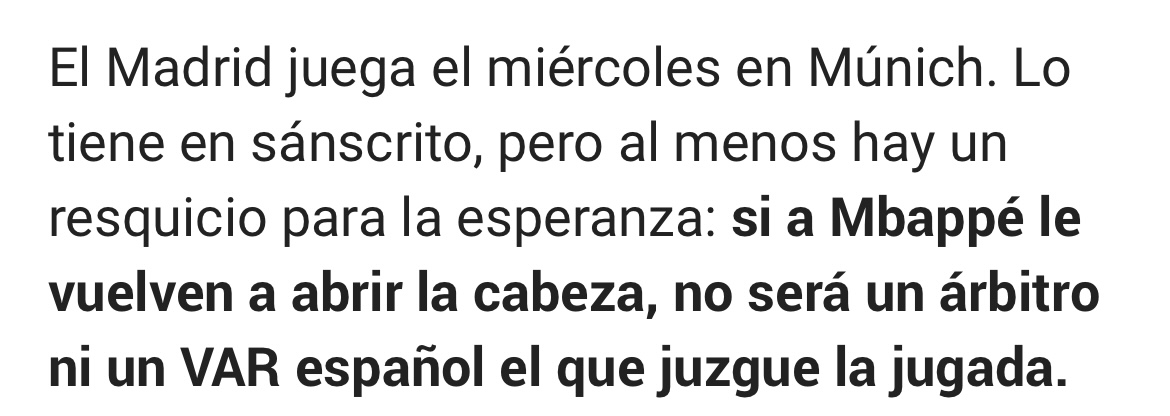 El medio en el que escribe, Marca, lleva con la de hoy tres portadas ignorando completamente el último elefante putrefacto en el cuarto de estar del fútbol español, es decir, el salvaje penalti brutalmente escamoteado al Real Madrid por esa agresión a Mbappé en el área del Girona, agresión que acabó con la sangre del delantero francés manando abundantemente de su frente ante la indiferencia del muy descarado Alberola Rojas y sus compinches del VAR, a la sazón afamados prevaricadores que responden a los nombres de Trujillo Suárez y Munuera Montero.