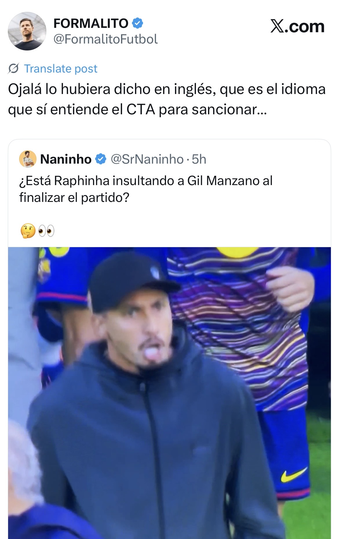 Flick no fue el único en el banquillo culé que dio rienda suelta a su alegría, de la manera más admirable, cuando marcó Araujo. Como bien indica este tuitero, Raphinha tiene mucha suerte de no ser Bellingham.