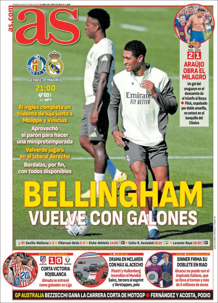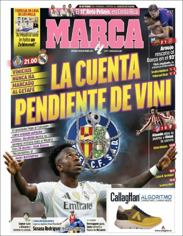 Por lo demás, y para no perder comba en la clasificación de la MLN (Mugrienta Liga Negreira), ya sabéis que el Madrid debe ganar esta noche en Getafe, que es como ganar en las calderas de Pedro Botero, con todo el respeto para el abnegado equipo de Bordalás. Nos recuerda Marca, en su habitual empeño en sembrar cizaña, que Vini aún no le ha marcado a dicho equipo. Nosotros lo que queremos es ganar. Quien marque el gol de la victoria (Vini, Mbappé o Courtois en saque de puerta) nos la trae laxa y pendulona, como maravillosamente dice nuestro amigo Falstaff. A lo mejor lo que pasa es que, a fuerza de constatar su iniquidad, es la propia MLN la que nos la trae de dicha guisa.