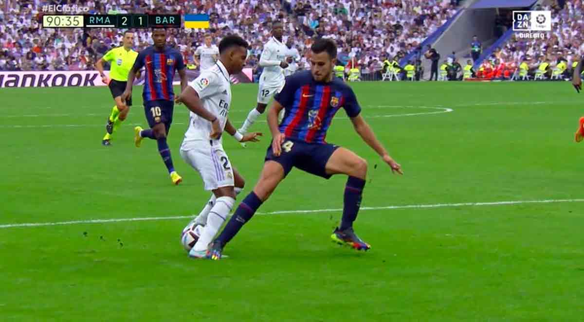 Hasta entonces, los arbitrajes que había vivido nuestro equipo habían sido correctos, diría yo incluso que intrascendentes. Nada que recordar en ellos prácticamente. Pero hete aquí que nada más acabar el Clásico, cuando todos hablaban de la superioridad manifiesta del Madrid durante 80 de los 90 minutos, el presidente del club culé se presentó en el vestuario del equipo arbitral para quejarse amargamente de un supuesto penalti no pitado a Lewandowski. Sánchez Martínez, colegiado precisamente no muy favorable a los blancos en su trayectoria (62,5% de victorias versus a un 70% de victorias cuando pita al Barça), había señalado el punto fatídico en un pisotón de Eric García a Rodrygo en los últimos minutos, y Laporta le pedía explicaciones por la diferencia de criterio a la hora de juzgar.