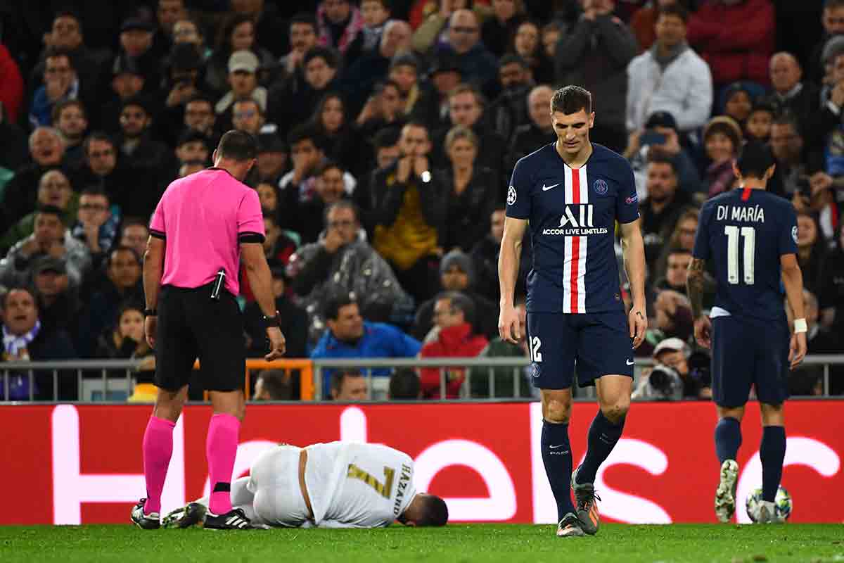 Hazard comenzó a transitar por esta senda de desgracias desde que su compañero de selección Thomas Meunier, lateral del Paris Saint Germain, le propinase una patada alevosa sin venir a cuento en un partido de la fase de grupos de la Champions League. Guárdame de mis amigos que yo ya lo hago de mis enemigos, debió pensar en ese momento el belga.