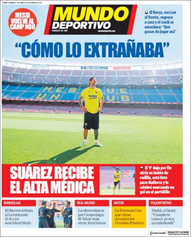 La sombra de Messi en el Camp Nou es alargada y se proyecta sobre la segunda noticia: “Suárez recibe el alta médica”.