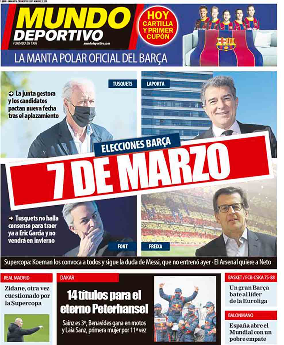 Las elecciones se celebrarán finalmente el 7 de marzo y la comisión gestora ha decidido no fichar a Eric García, pese a que decenas de portadas llevaran meses diciendo lo contrario (añádanse a las de Neymar, Lautaro, Depay…). Resulta curioso el interés de tantos empresarios por acceder a un puesto de tanto riesgo como presidente del Barça, pues varios terminaron imputados por una razón u otra: Núñez, Gaspart, Laporta... A Bartomeu le pasaron rozando los tiros, puesto que su firma estaba en uno de los contratos ficticios de Neymar.