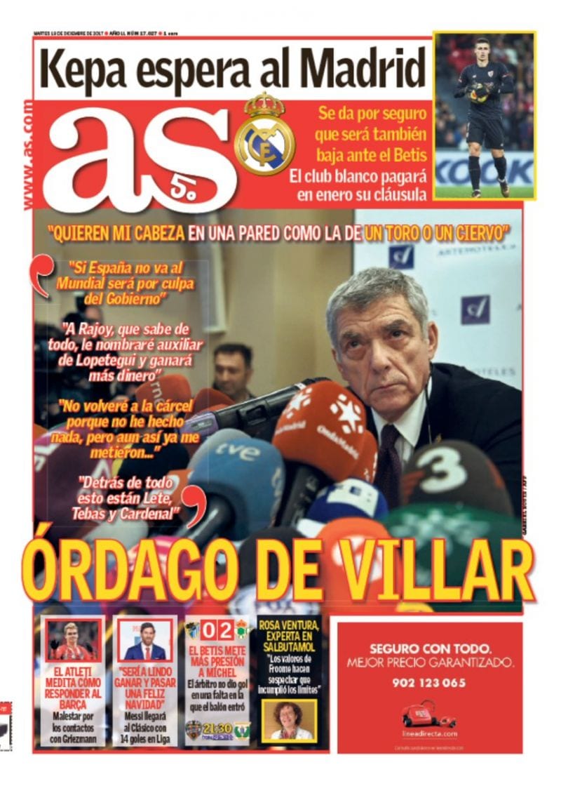 "Qué poder tendrá Ángel María Villar para que un periódico que tomó el ‘Villarato’ por bandera hace años, ahora no sea capaz de asomar una mísera crítica al jefe de la RFEF".