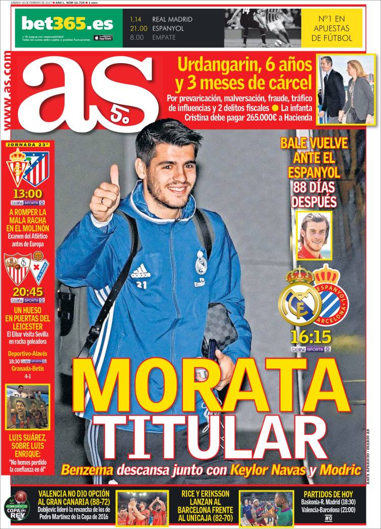 También "vuelve" Morata, con la diferencia de que, en rigor, no se había ido, y con la diferencia aún más diferente de que para los hacedores de As los tiempos no han cambiado y los jugadores españoles siguen siendo queridos, mimados y celebrados más por el hecho de ser españoles que por el hecho de ser (buenos) jugadores. Lejos de nosotros el que nos parezca mal este mimo si es que, en el fondo (y muchas veces en la evidente superficie) no esconde un modo taimado de arrojar chinitas a las ruedas de los sucesivos entrenadores blancos que ha fichado Florentino, esa diana que ha puesto Relaño en su despacho.