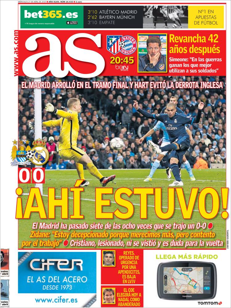 La prensa tiene razón, fué un partido infame. Es lo que suele suceder en los partidos de semis de Champions, cuando las cosas están igualadas y NO APARECE EL ÁRBITRO PARA INVENTARSE UNA EXPULSIÓN O REGALAR UN PENALTY (o 5).