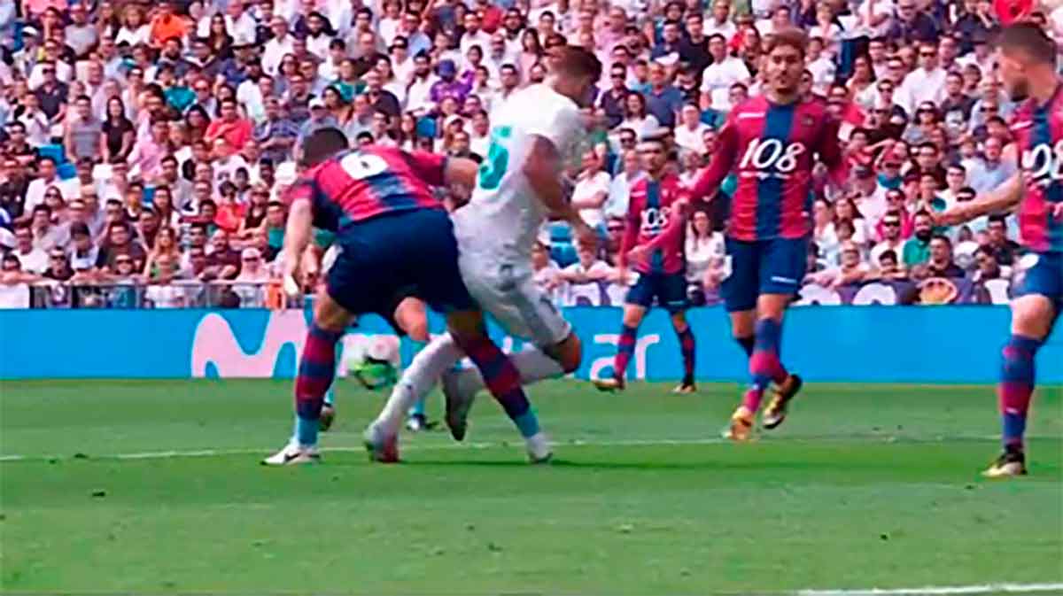 En septiembre del 2017, en un Madrid-Levante que acabó en empate a uno, mostró la roja a Marcelo y dejó sin señalar un penalti sobre Theo Hernández. Aquí se aprecia la ausencia de contacto entre al jugador levantino y el francés.