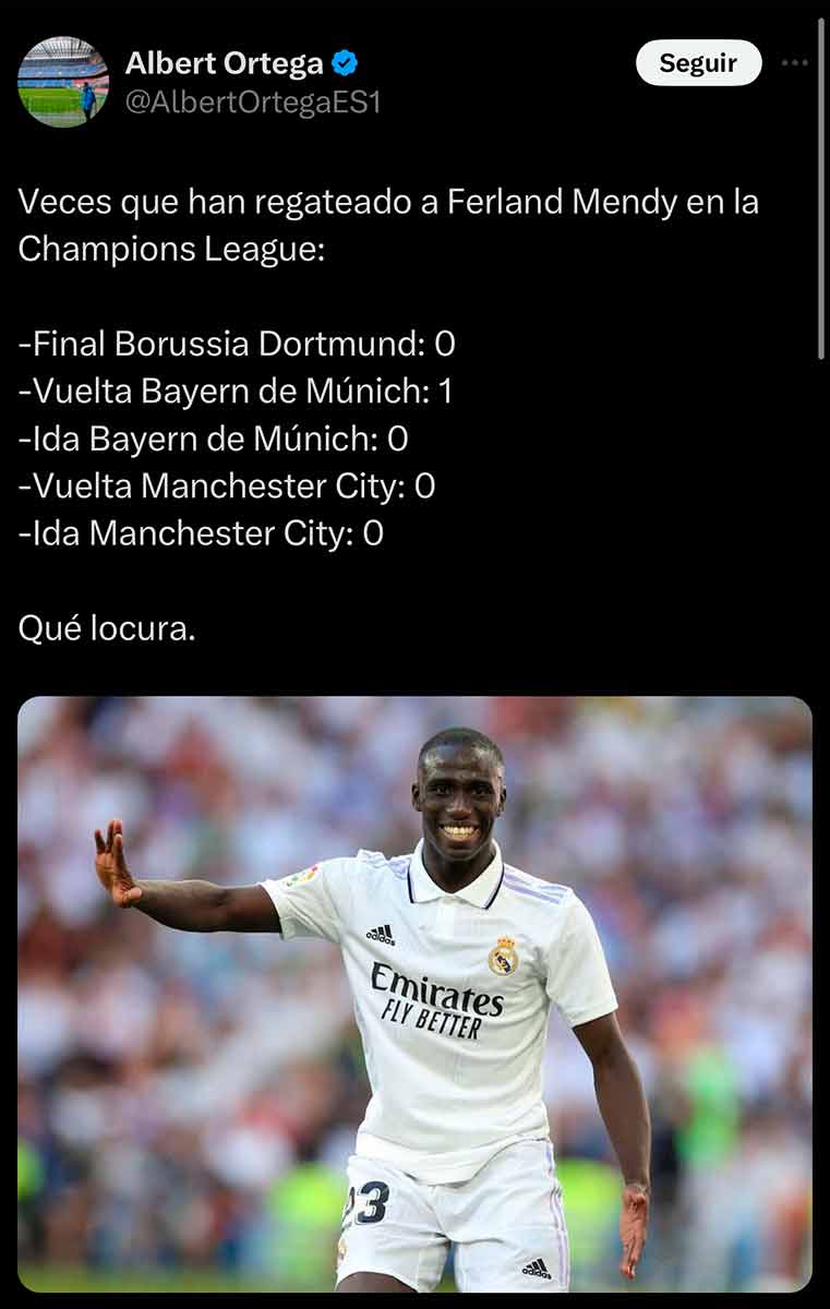 Qué gran verdad! Por qué no se valora a Mendy en su justa medida?