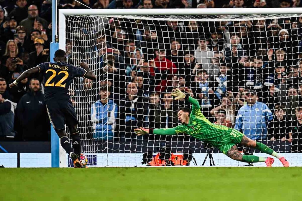 El Madrid no había comenzado de buena manera los lanzamientos desde los once metros, Modric había fallado. Los nervios de hielo de Lunin permitieron descontar ese error al detener impasible el penalti de Bernardo Silva. El siguiente tirador citizen era Mateo Kovacic, compañero de Antonio durante cuatro años en el Chelsea. Entonces sucedió el primer acto heroico de Rüdiger.