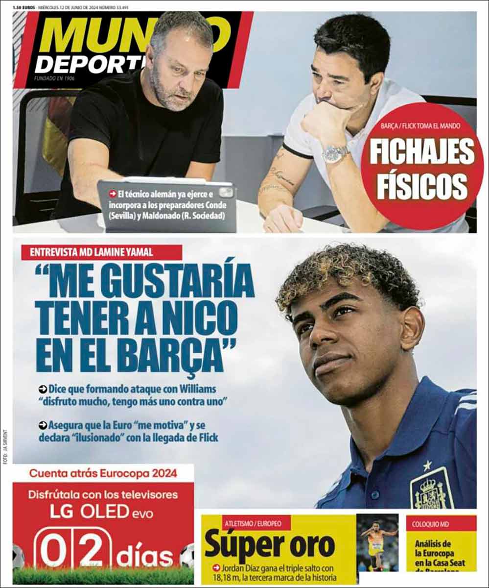 Se nota en las caras de Flick y de Deco, de Deco y de Flick, que ya no pueden más. No se les puede culpar. En Mundo Deportivo los vemos también contemplando el vídeo, conteniendo la náusea. No soportan ver esa colección histórica de artistas que arrasan en la radiofórmula sin proponer. El que sale en la foto de abajo, sin embargo, no es ningún artista de reggaetón sino Lamine Yamal. El reggaetón es cosa de vikingos, músicos (??) de ínfimo nivel que no comprenden que la música es posesión o barbarie, y que sólo buscan el triunfo por la burda vía de la insistencia en el arrime de la cebolleta, sin importar el cómo. Flick y Deco, Deco y Flick, ya van por la Décima, apoteosis del flow más mundano. Puaj.