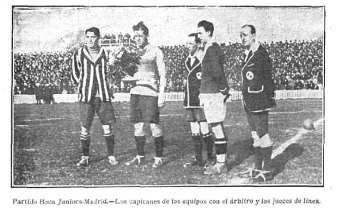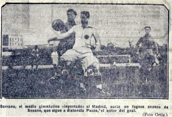 El caso de Boca Juniors fue especial. Los argentinos vinieron a Europa de gira en 1925 y en España jugaron y ganaron 2-1 contra el Athletic Club de Madrid, actual Atlético de Madrid. Tres días después, sin anunciarse demasiado, se acordó que los bonaerenses jugaran otro partido contra el Real Madrid. La contienda fue el 22 de marzo de 1925 en presencia del Rey Alfonso XIII y su hijo, el Príncipe de Asturias, con muy poco público. Loa argentinos vencieron por 1-0. En plena eliminatoria de Copa y con un solo día descanso, el Madrid decidió jugar aquel partido reforzado por tres jugadores de otros equipos, entre ellos mi abuelo, Mariano Serrano, de la Gimnástica Española, que también había jugado y ganado días antes contra el Irún en Copa.