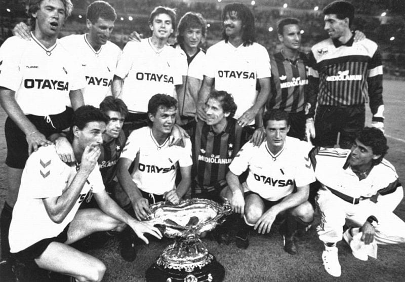 A finales de los 80 el Milan, que fue bestia negra en Europa de los madridistas, también lo fue en el torneo veraniego. Antes el Dinamo de Kiev, ganador de la Recopa, se hizo con la edición de 1986, siendo en 1988 y 1990 cuando el cuadro rossoneri de los Maldini, Rijkaard, Gullit, Baresi o Van Basten ganó a los blancos por 0-3 y 1-3 respectivamente. Entre medias, y ya por entonces celebrándose el trofeo a partido único, el Madrid alzó los entorchados de 1987 y 1989 al derrotar a los dos equipos de Liverpool, primero al Everton y luego a los reds tras goles de Hugo Sánchez y Butragueño.