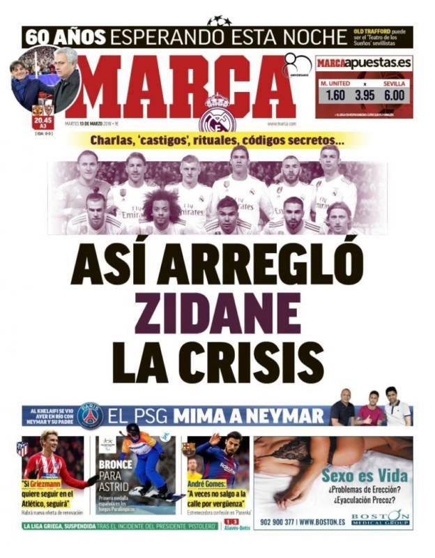 Y 'Marca' nos dice que Zidane ha solucionado una crisis a su manera. Crisis, por cierto, más bombeada por la prensa que sentida por el madridismo. A la hinchada blanca le duele mucho el papel que ha firmado el Real Madrid en Liga y Copa, pero sabiendo que hemos ganado casi todo en 2017 y que estamos en cuartos de final de la Champions League habiendo eliminado con autoridad al PSG, aquello de la crisis no sabemos si suena demasiado exagerado. Pero ahí queda, claro.