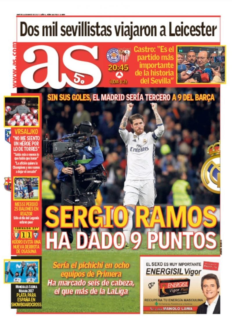 Según el As, Ramos le ha dado 9 puntos al Madrid, y sin esta aportación seríamos terceros, a 9 del Barcelona.