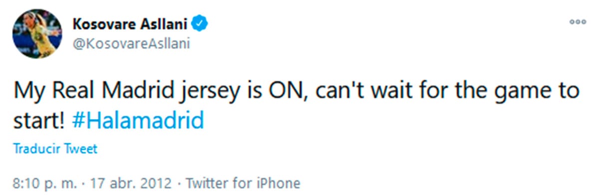 Hay quien podría pensar que Asllani tomó esa decisión de “sacrificar” su carrera, al jugar en un rango competitivo mucho menor, para disfrutar del reconocimiento del impacto de la principal marca deportiva del mundo. Es muy probable que esa fuera la legítima motivación de muchas de sus compañeras recién llegadas al equipo. Pero lo cierto es que Kosovare lleva desde mucho antes de que nadie sugiriera la creación de una sección femenina del Real Madrid, proclamando constantemente su madridismo en redes sociales.