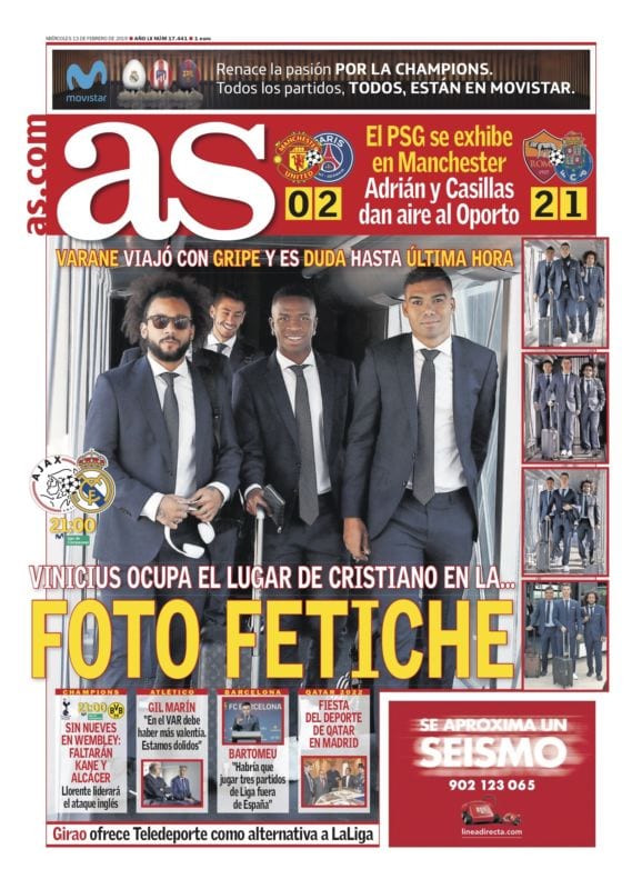 Jugamos contra una banda, eso sí. Suele pasar. Lo hacen con cada equipo al que se enfrenta el Real Madrid. Da igual que sea Juventus, Manchester City o Ajax. Los holandeses son una perita en dulce. No menos de un 0-6 en el partido de ida. Todo lo demás sería un fracaso. El equipo blanco es el único que empieza los encuentros habiéndose jugado ya.