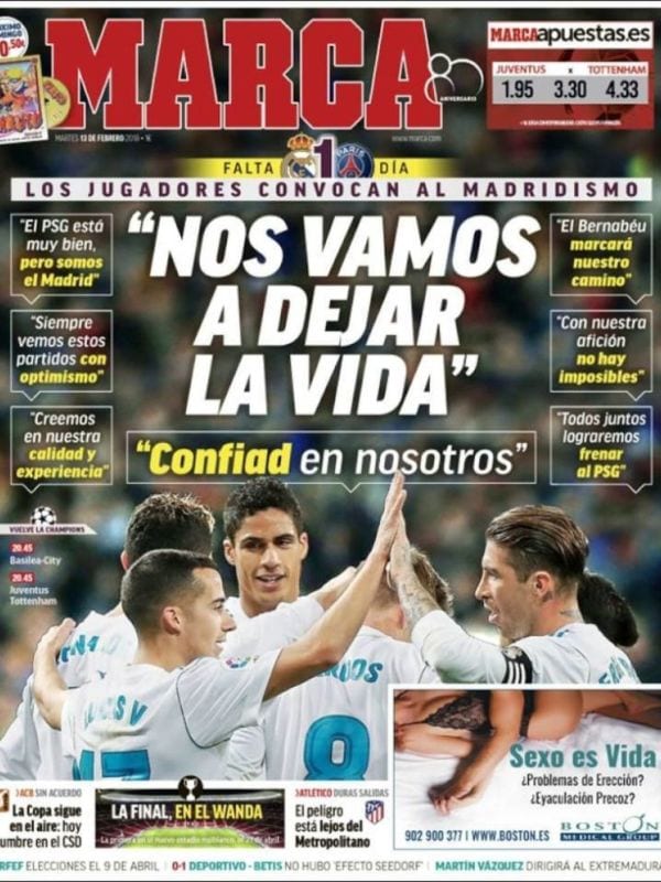 Hoy, como la primavera está más cerca y las cosas han ido cambiando, el Madrid debe pasar por obligación o ser eliminado si no mete 6 en cada partido.