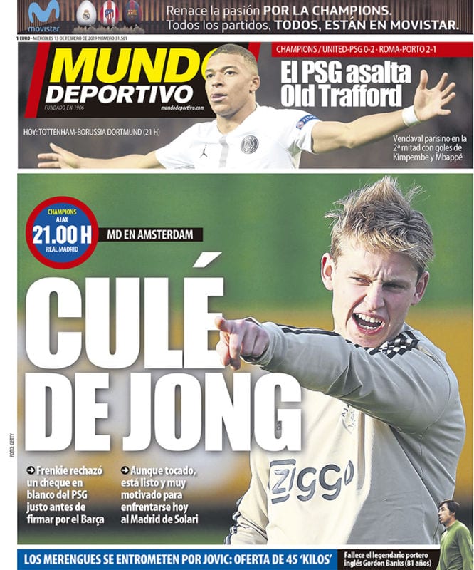 Hoy juega el "culé De Jong". Y al parecer lo hace ante el Real Madrid.