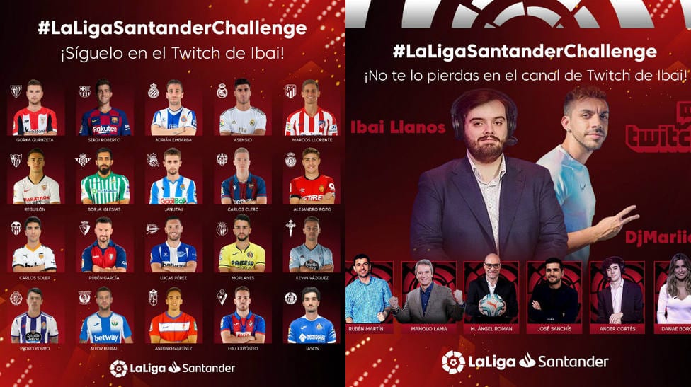 Apenas el visionado de algunos partidos vintage, colgados en las redes sociales para distracción de la gente, han servido para mantener el pulso… hasta hace un par de días en que Ibai Llanos proyectó la organización de un torneo del FIFA 20 entre los equipos de Primera División. La representación de cada equipo correría a cargo de un jugador de cada plantilla. La expectación, de la que se ha denominado #LaLigaSantanderChallenge, ha sido de tal calado que en 24 horas ya se contaba con un voluntario por club y a la iniciativa ya se habían adherido LaLiga, el Banco Santander y los principales medios deportivos y generalistas españoles. Los fondos recaudados por publicidad serán donados para la lucha contra el COVID-19 (material sanitario), a lo que se sumarán las donaciones, como la del propio organizador, Ibai, que aportará 15.000 euros, o la de futbolistas y empresas.